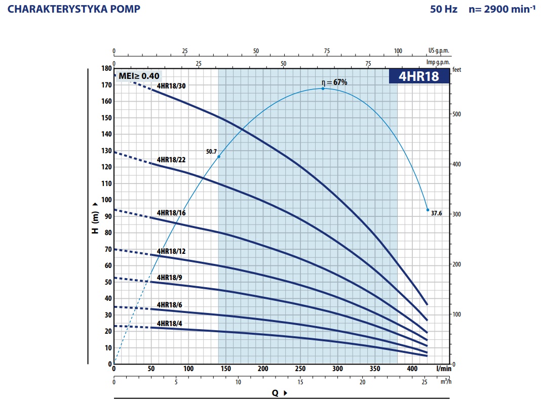 – Maksymalna wysokość podnoszenia, H: 176 m