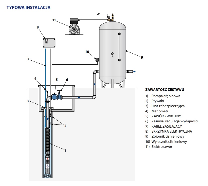 4 calowa pompa głębinowa. Nadaje się do stosowania z czystą wodą o zawartości piasku nie większej niż 100 g / m³. Ze względu na swoją wysoką wydajność i niezawodność nadają się do stosowania w zastosowaniach domowych, budownictwie, przemyśle, takich jak do dystrybucji wody w połączeniu ze zbiornikami ciśnieniowymi, do nawadniania, do mycia instalacji i do podwyższania ciśnienia w zestawach przeciwpożarowych itp. 1