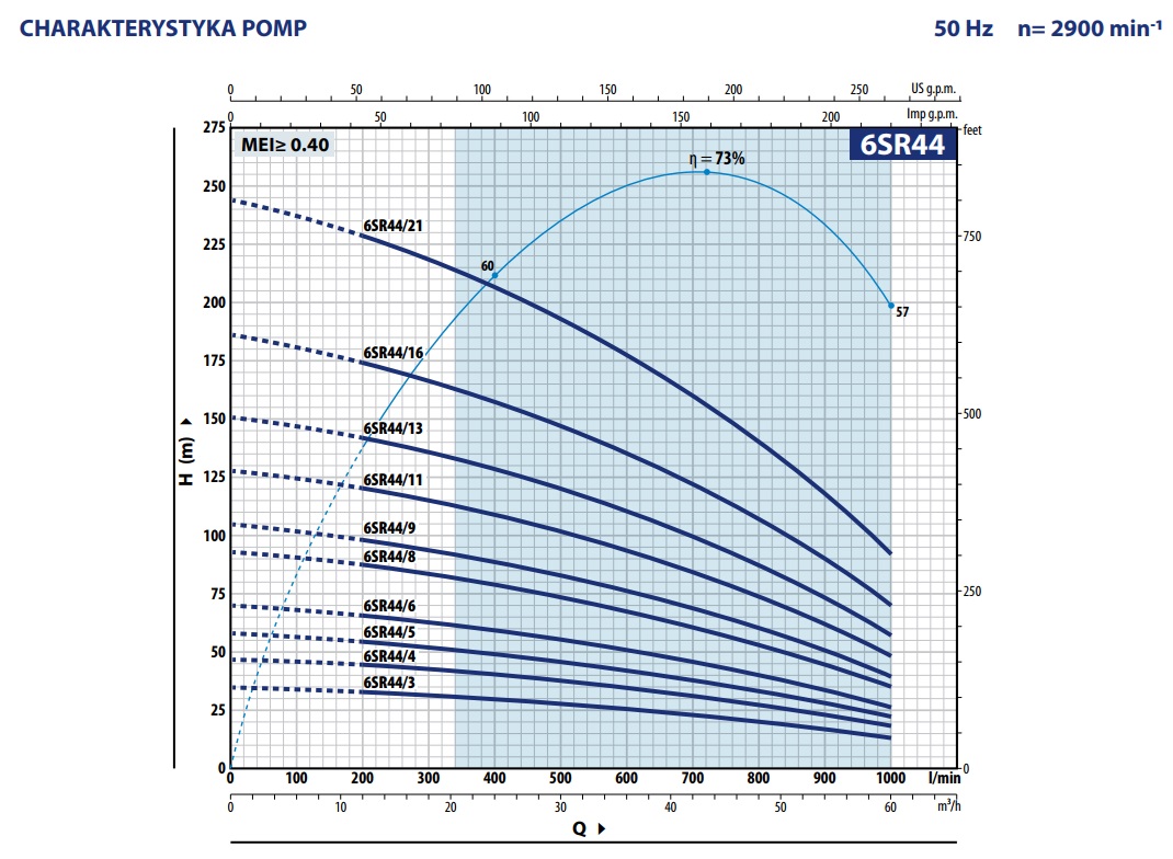 6 calowa pompa głębinowa. Nadaje się do stosowania z czystą wodą o zawartości piasku nie większej niż 100 g / m3. Ze względu na swoją wysoką wydajność i niezawodność nadają się do zastosowania w budownictwie, rolnictwie i instalacjach przemysłowych, takich jak dystrybucja wody w połączeniu ze zbiornikami ciśnieniowymi, do nawadniania i podnoszenia ciśnienia w zestawach przeciwpożarowych itp.