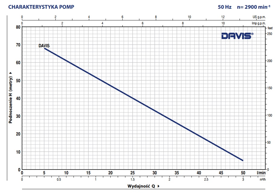 – Maksymalna wydajność: Q: 50 l/min (3 m3/h)