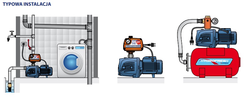 Samozasysające, poziome pompy wirowe. Samozasysające pompy JSW są zaprojektowane do pompowania wody nawet w przypadku obecności powietrza. Ze względu na ich niezawodność i łatwość użycia, zaleca się je do zastosowań domowych, takich jak dystrybucja wody w połączeniu z małymi lub średnimi zbiornikami ciśnieniowymi, oraz do nawadniania ogrodów i sadów itp.