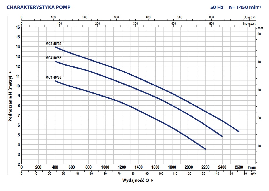 – Maksymalna wydajność: Q: 2600 l/min (156 m3/h)