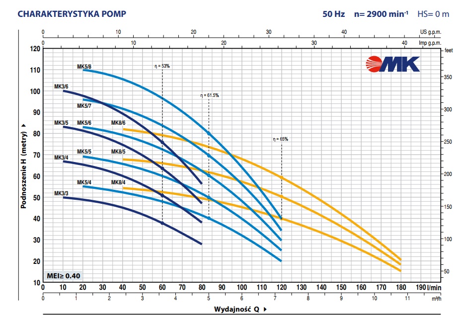– Maksymalna wysokość podnoszenia, H: 112 m