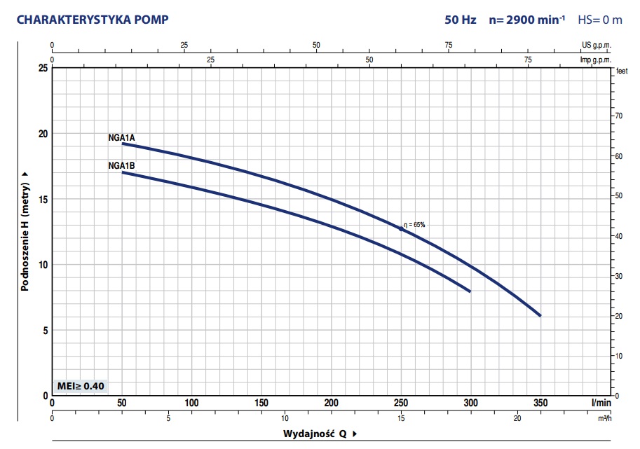 Pompa odśrodkowa z otwartym wirnikiem ze stali nierdzewnej AISI 316. Korpus z żeliwa. Nadaje się do stosowania z czystą wodą i płynami, które nie są chemicznie agresywne w stosunku do materiałów, z których wykonana jest pompa. Otwarta konstrukcja wirnika umożliwia pompowanie płynów zawierających stosunkowo wysoki poziom zanieczyszczeń bez ryzyka zatkania się wirnika. Ze względu na te cechy pompy z serii NGA są stosowane szczególnie w przemyśle i do przesyłania wody z kanałów, rzek, zbiorników, zbiorników itp.