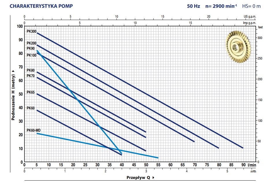 – Maksymalna wysokość podnoszenia, H: 100 m