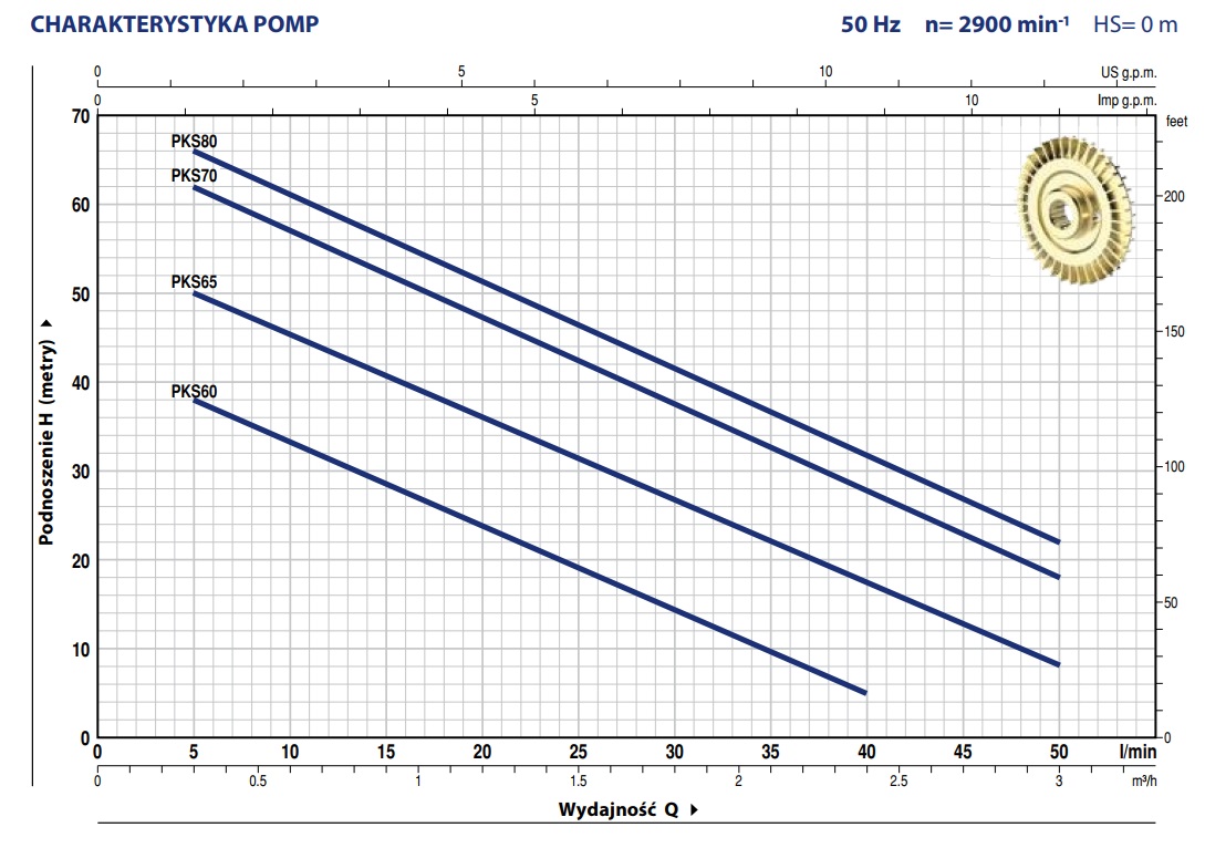 – Maksymalna wysokość podnoszenia, H: 70 m