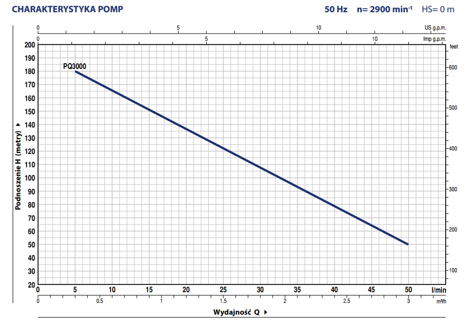 – Maksymalna wydajność: Q: 50 l/min (3 m3/h)
