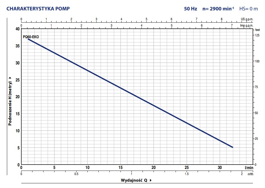 – Maksymalna wysokość podnoszenia, H: 38 m