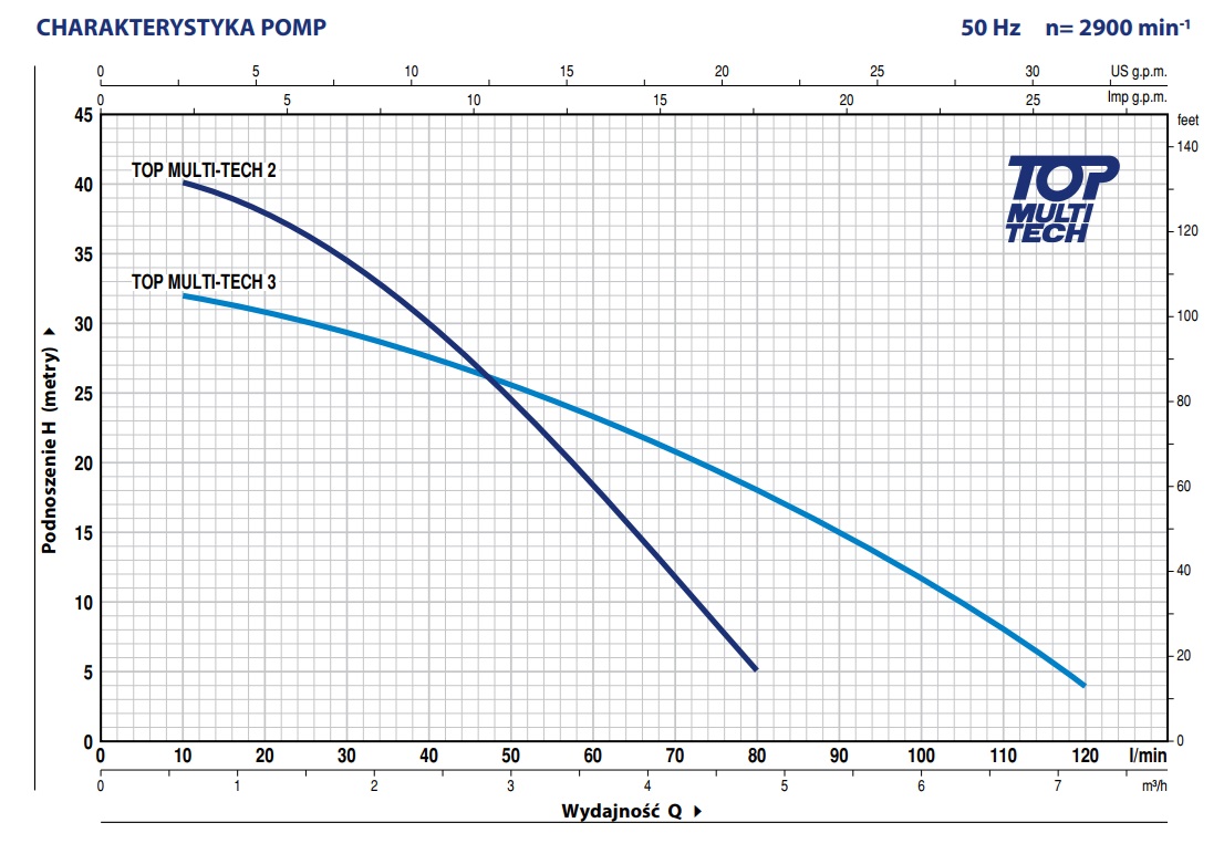 Pompy TOP MULTI-TECH są wyposażone w wewnętrzny elektronikę sterującą, która uruchamia pompę, gdy ciśnienie w układzie spada poniżej 1,5 bara (np. podczas otwierania zaworu) i zatrzymuje ją, gdy przepływ spada poniżej 3 litrów na minutę.